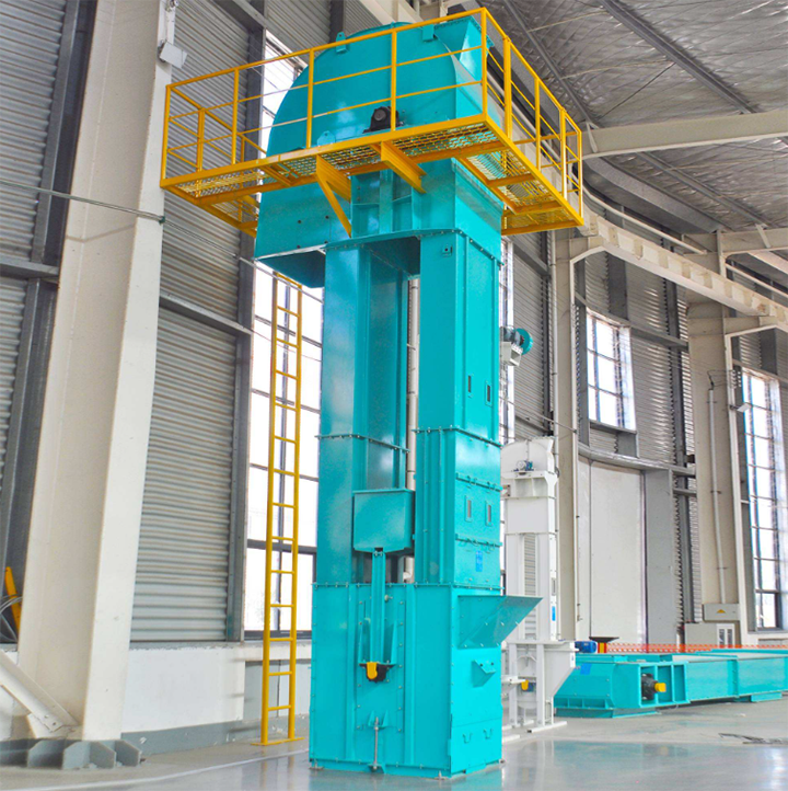 斗式提升机:按处理能力 100 吨/小时计算,矿渣水泥废料也可选用提升能力 120~150 吨/小时的中型斗式提升机,提升高度约 10~20 米,机壳宽度约 600~800 毫米,具体的参数可根据物料粒径、含水率及现场布置进行配置。该设备适合空间不够、需较大提升高度的工况,但处理能力通常低于带式输送机。