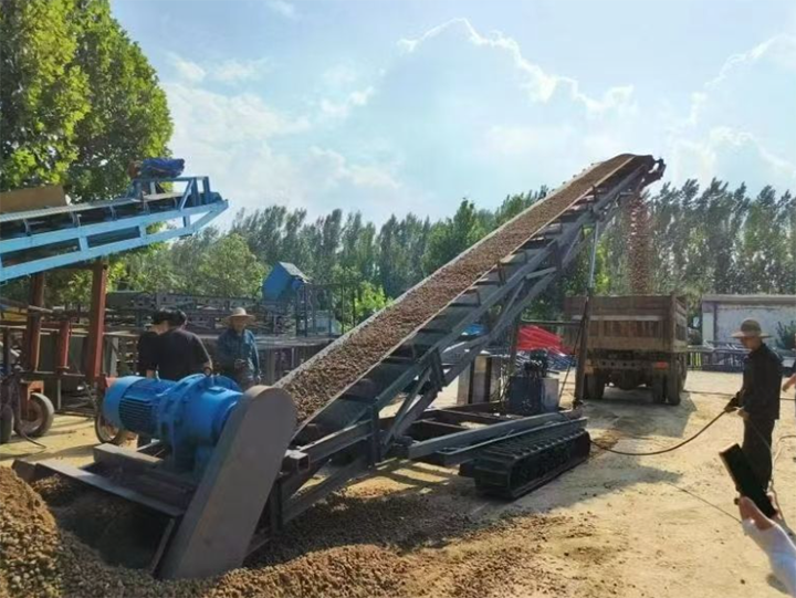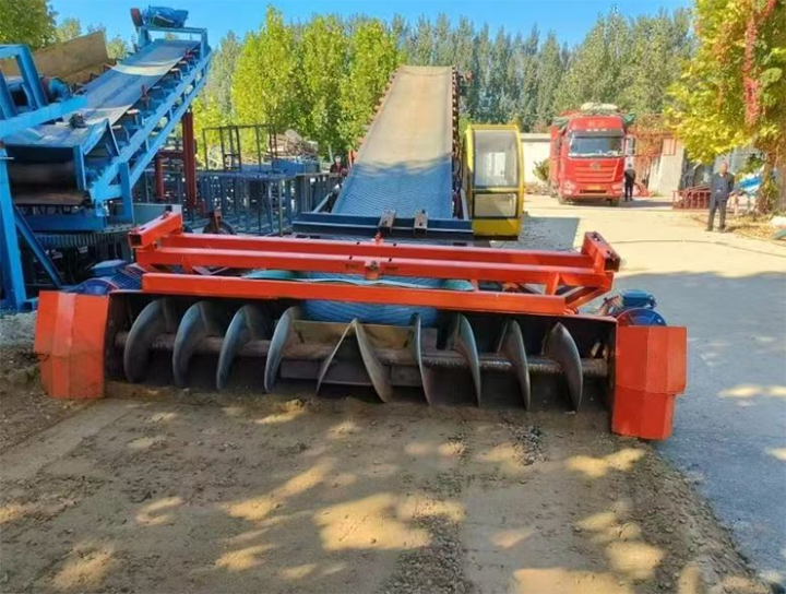 矿渣水泥废料由地坑或料仓经给料机进行下料,进入皮带输送机系统。皮带机采用耐磨橡胶带,输送机倾角≤18°,末端设置可调高度的装车溜槽,直接对接卡车车厢。全线可以配置防尘罩、导料裙板及喷雾除尘系统,减少扬尘污染。该方案连续性好,维护成本低,适合场地较为开阔、水平输送距离较长的工况。