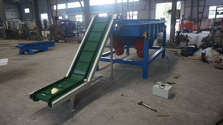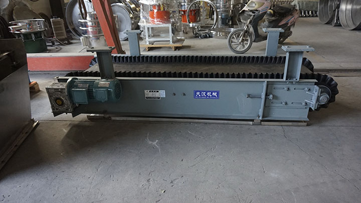 由波纹挡边带、基带横隔板、机头传动滚筒、驱动装置、改向压轮、挡边轮、振打器等组成。